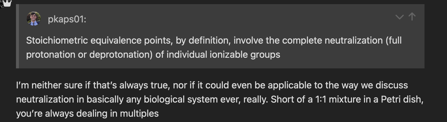 By this argument, then, you can’t have an equivalence point for a polyprotic species, and I’m not entirely convinced that we don’t see that exact thing referenced.