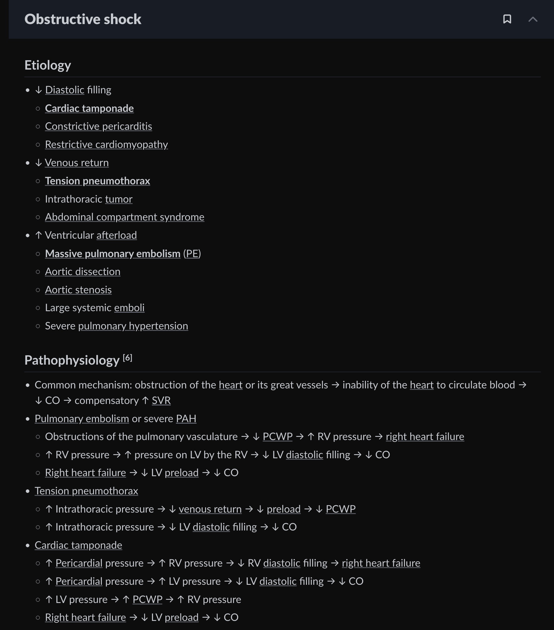 Also worth noting that FA used to have “PCWP (preload)” but now only includes PCWP, so not sure if we need to separate these concepts??? Maybe need to divide PE, tension pneumothorax vs. tamponade, if anything
