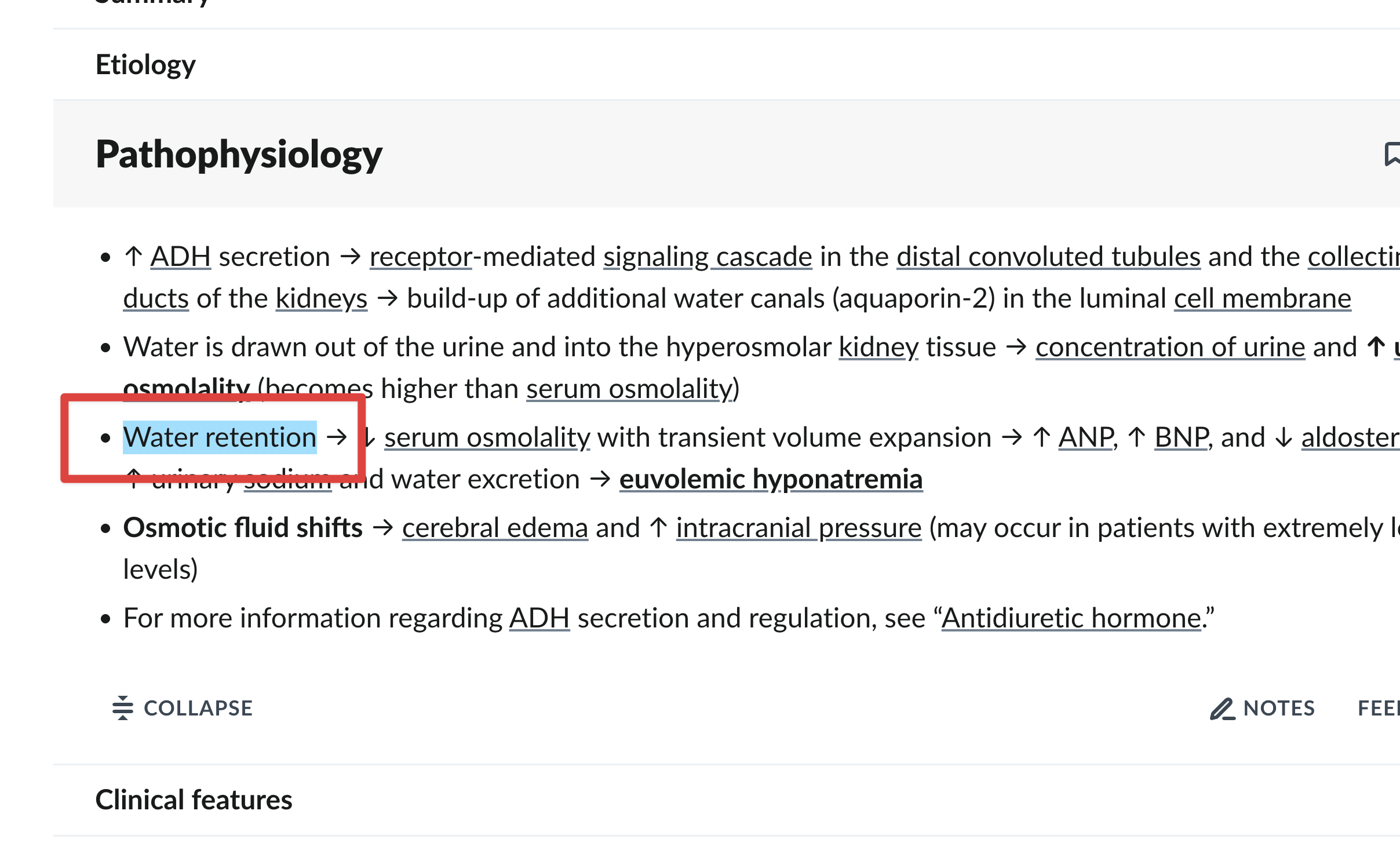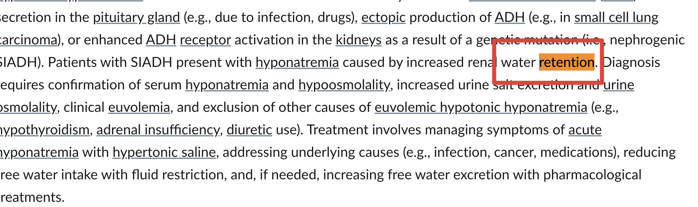 Although ‘reabsorption’ is more accurate when discussing ADH, I agree with Brian that ‘retention’ is the better term in the context of SIADH. Although I think both terms are valid here.
