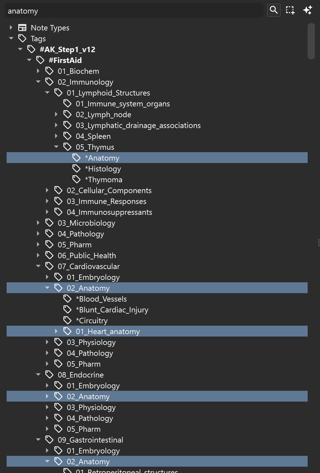 So, while those specific cards aren’t present, you can search for “anatomy” in the tag search bar to explore the available tags and see if the existing anatomy cards meet your needs.