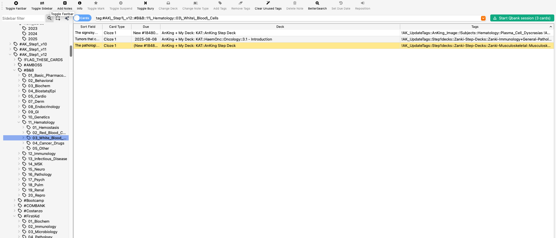 i have like 1 card for each tag for pathoma, even when i reset local settings.