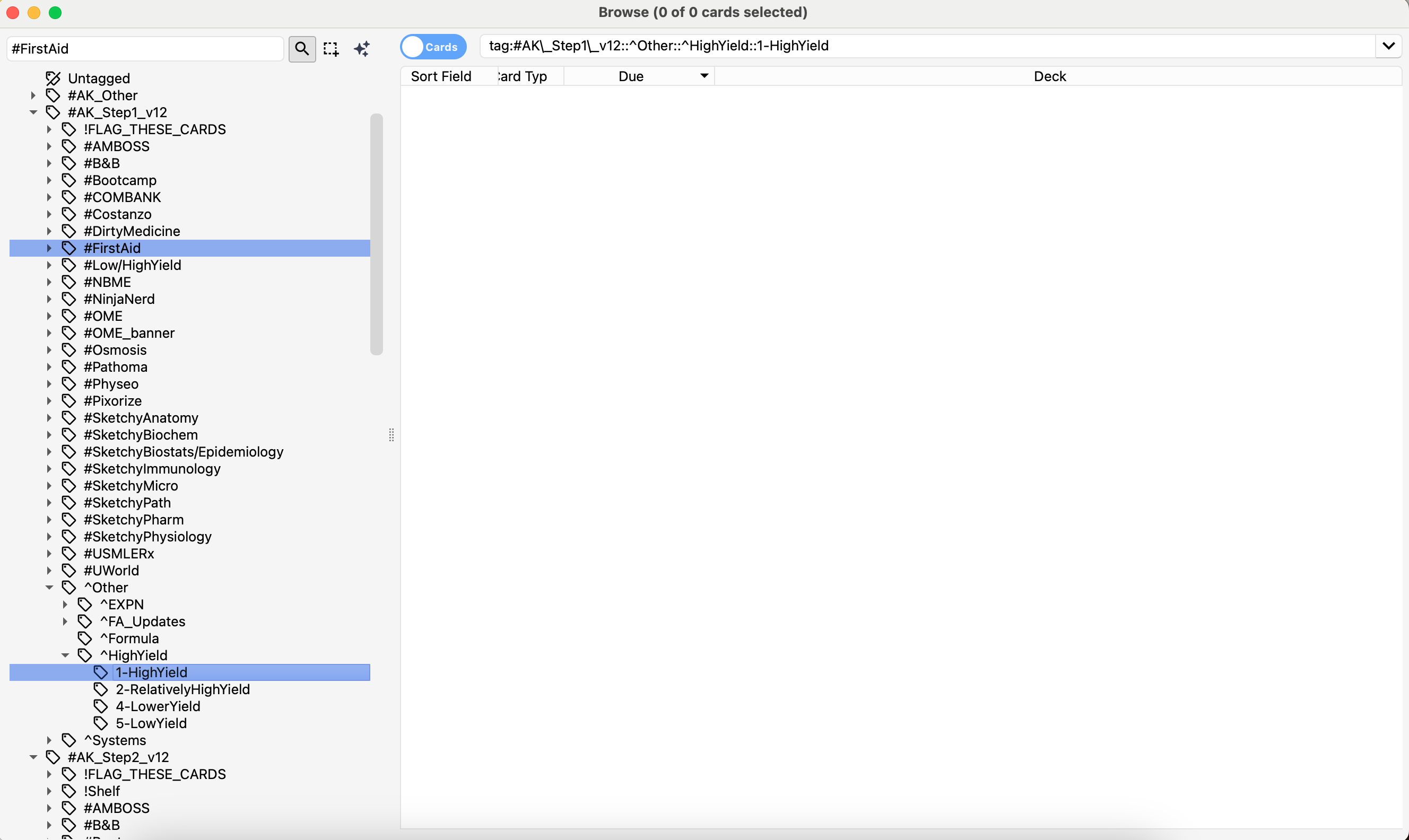 I tried to search for the high-yield cards for anking FA, and end up showing 0 card. Please see attached for what I have.