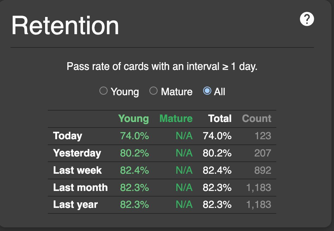Aside from that, for better or worse there aren’t any other ways to change your retention. In most cases, if you’re forgetting a lot the algorithm will adjust over time and it will eventually tune itself to your habits