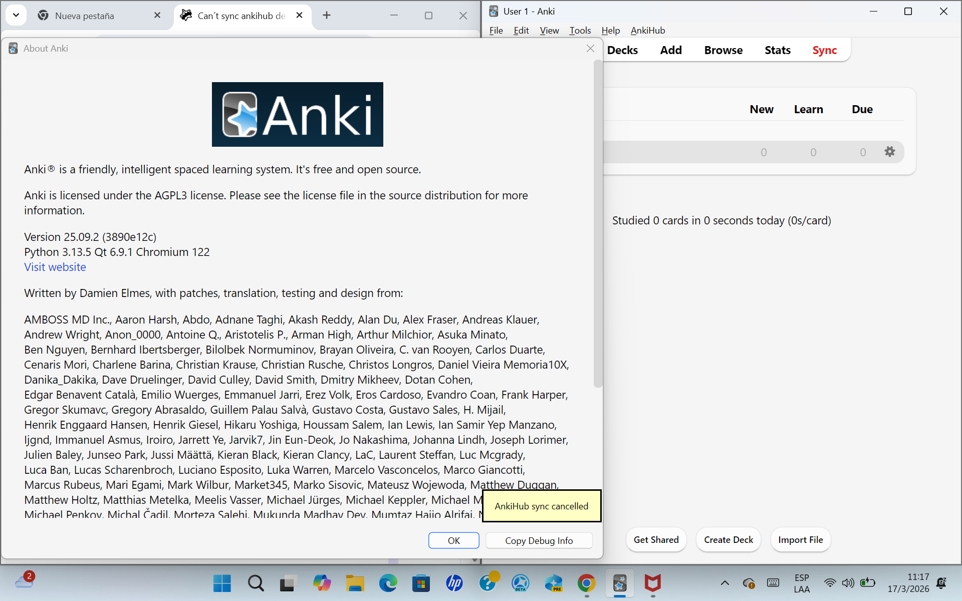 i have the 25.09 version and still doesnt work, i tried uninstalling anki and installing it again, nothing has worked