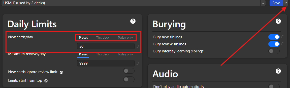 - Make sure the “Preset,” “This deck,” and “Today Only” tabs all have the same number.