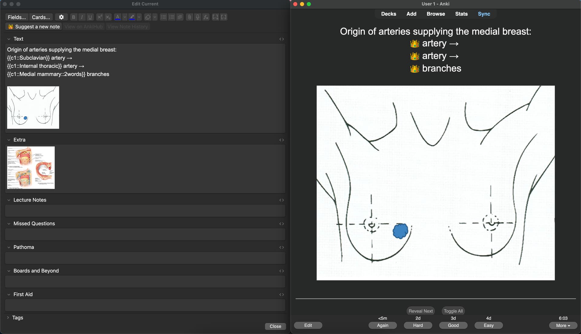 I was trying to add a ‘hint’ to my one-by-one cards, but I noticed when I added the hint in normal format, example “{{c1::Medial mammary::2 words}}.”