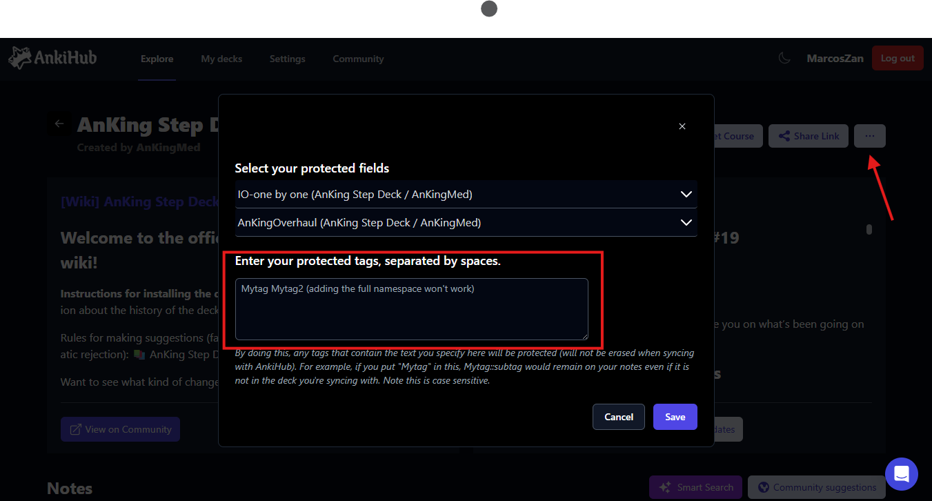 Then, go to the AnkiHub website deck page (Sign In), click on the three dots, and send us a screenshot of your protected tags. Have you protected any?