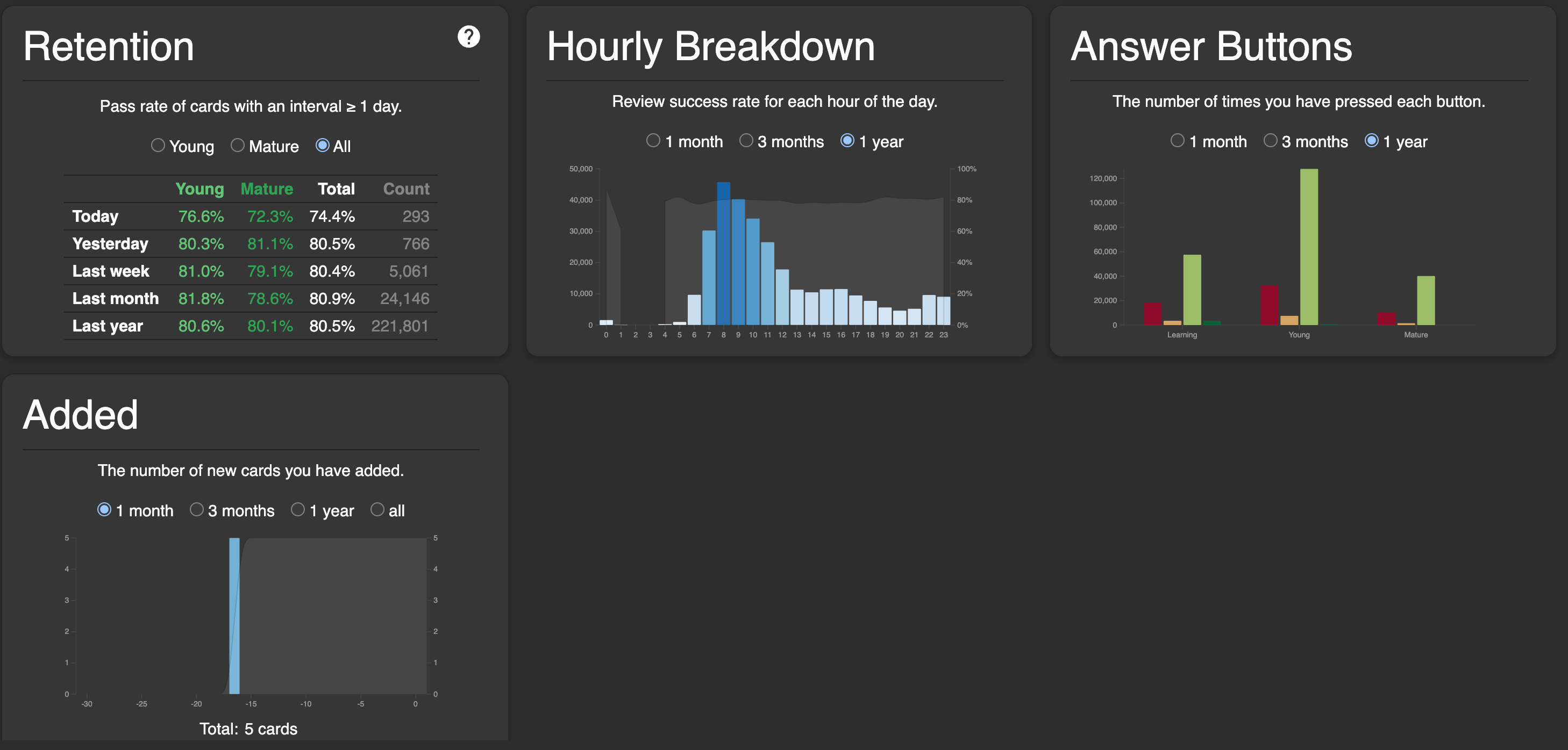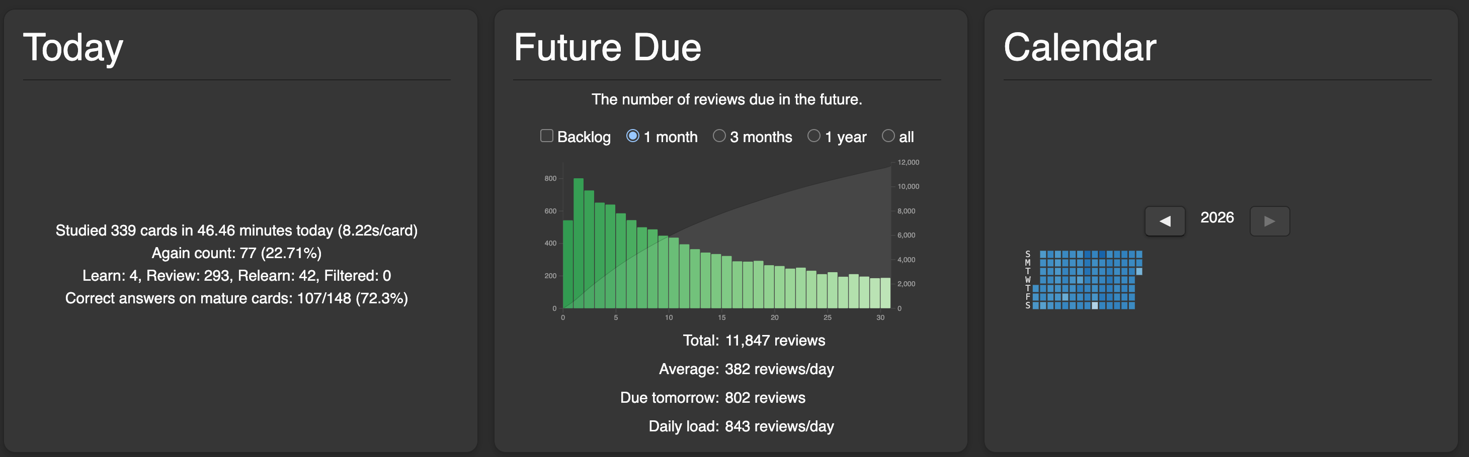 - A screenshot of Stats → Today → Review count graph (last 30 days)
