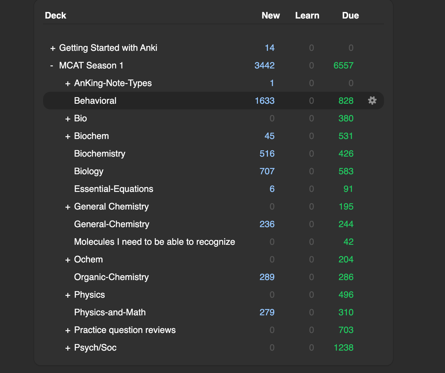 - Repeat for any other MCAT subdecks that might be outside that tree (if applicable).