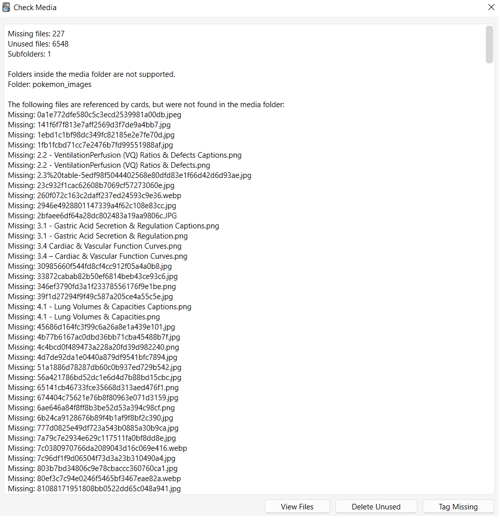 Ankiâs built-in Tools > Check Media tool can sometimes show a âmissing filesâ report even when no media is actually missing from your AnkiHub decks.