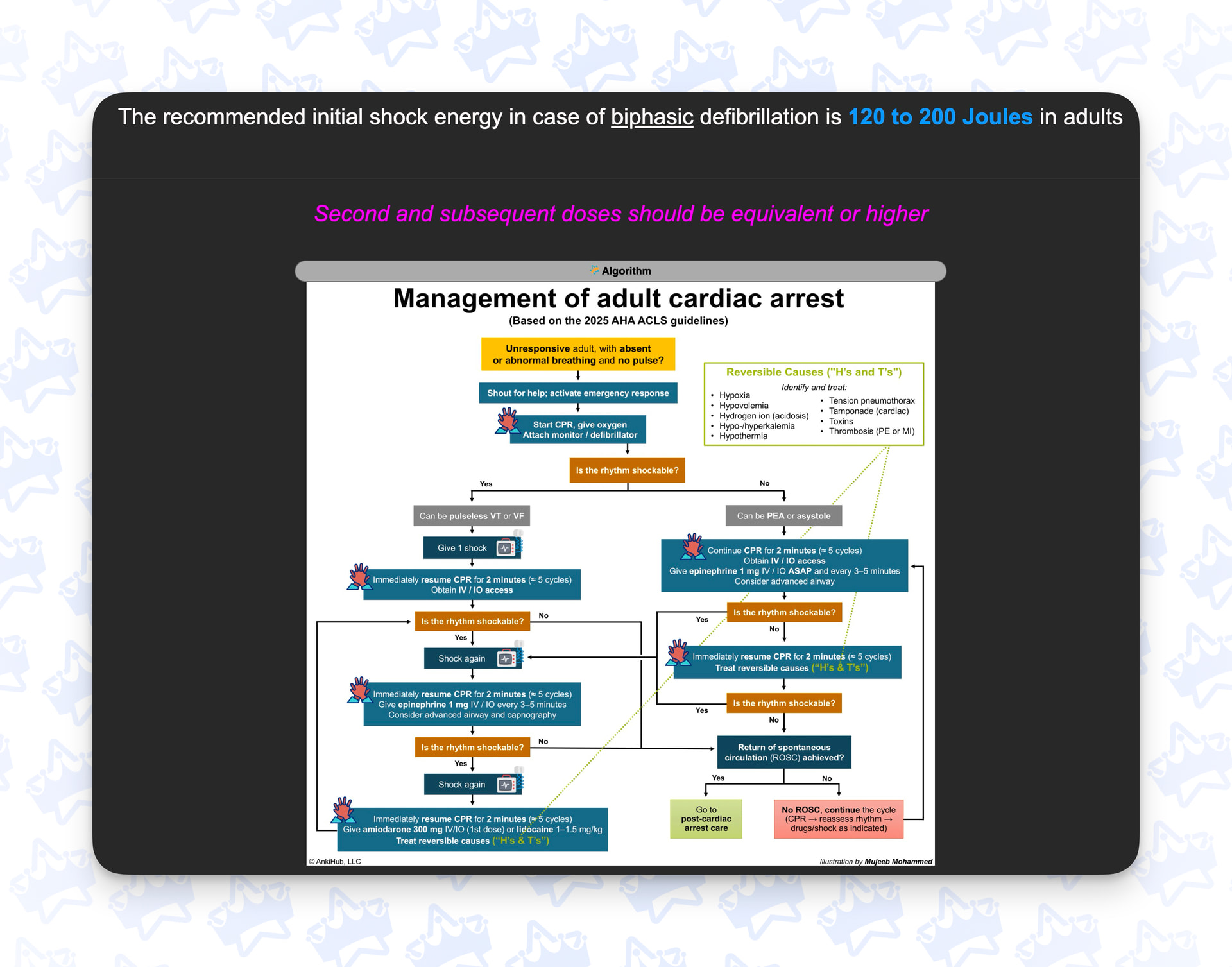 Our goal was to create an BLS/ACLS deck based on the official 2025 AHA guidelines to help healthcare providers quickly review and retain the most important info for real-life emergencies. The goal is to make it clear, high-yield, and easy to use for anyone. We also aimed for it to be short and not overly bloated with details. As of this post, the deck is 286 cards (228 notes)