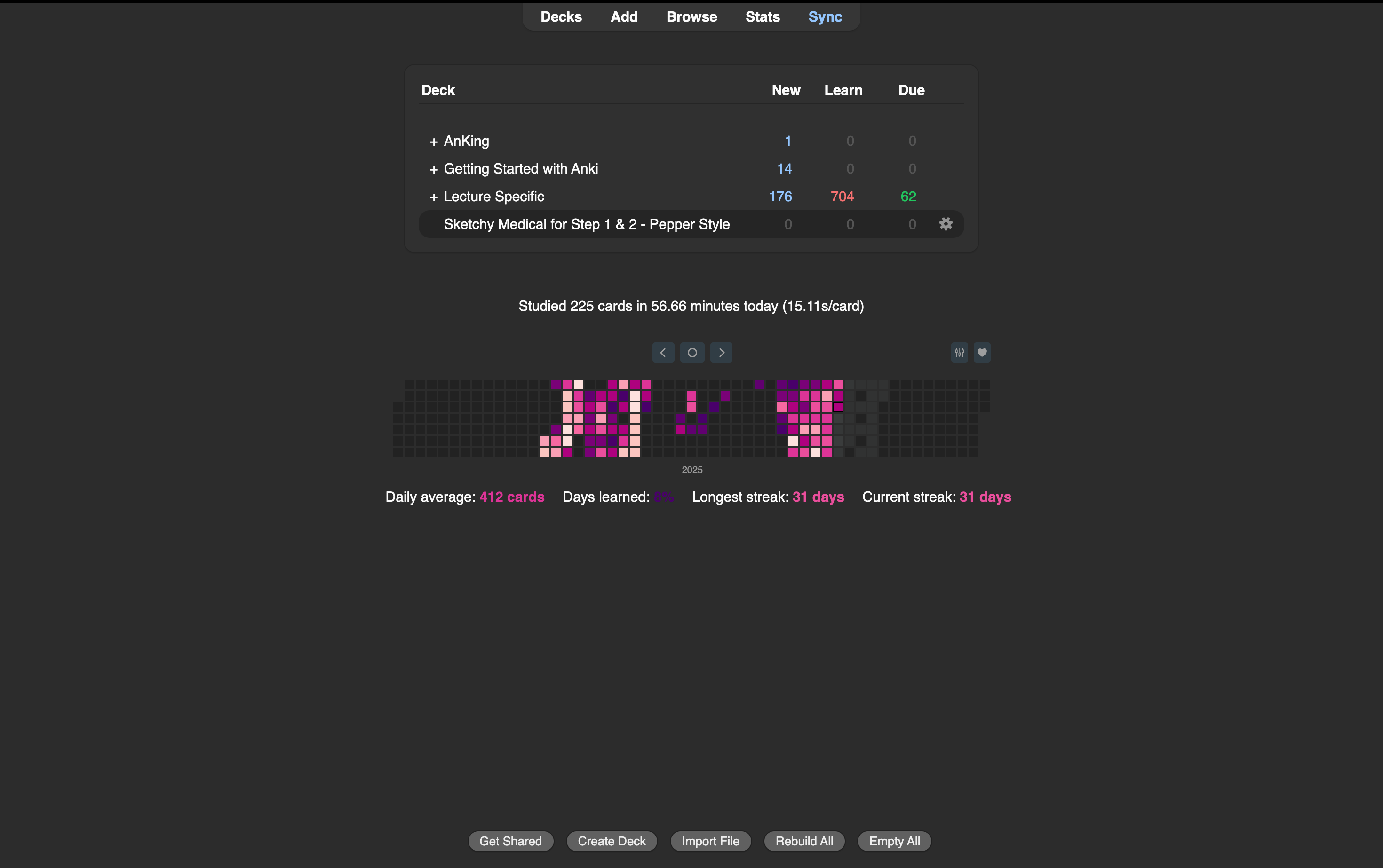 Here is a screen shot of my Anki main screen: