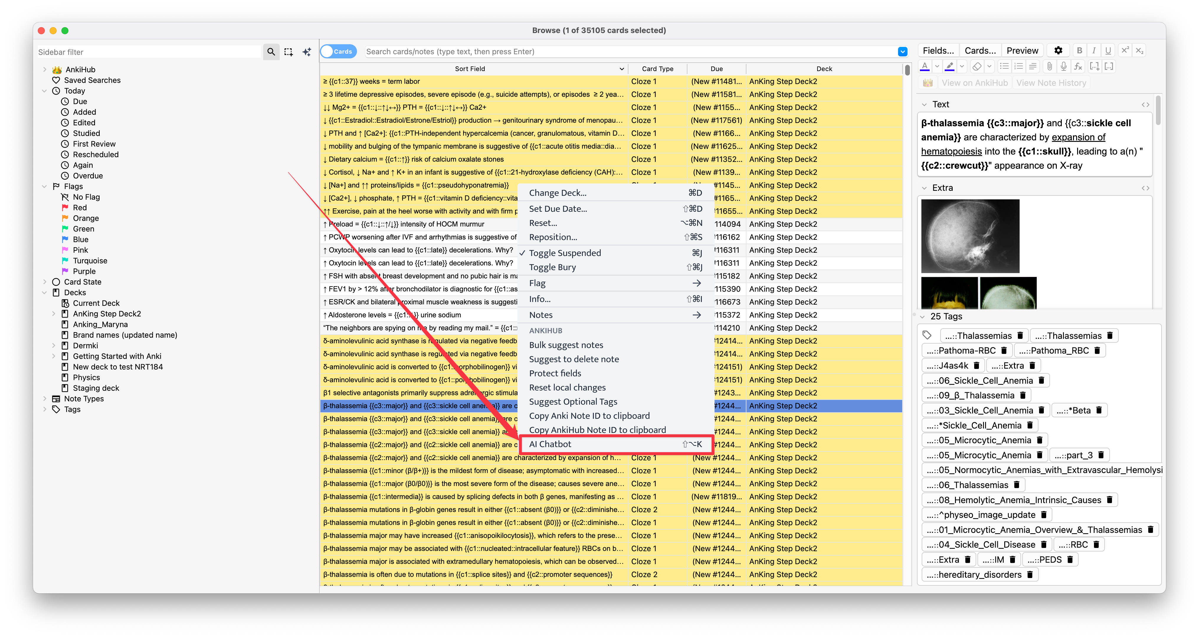 You can also now launch the chatbot directly from the Anki browser without having to start a review session. Just right-click on a note or use a keyboard shortcut to open the chat and get answers instantly, keeping your study workflow smooth and uninterrupted.