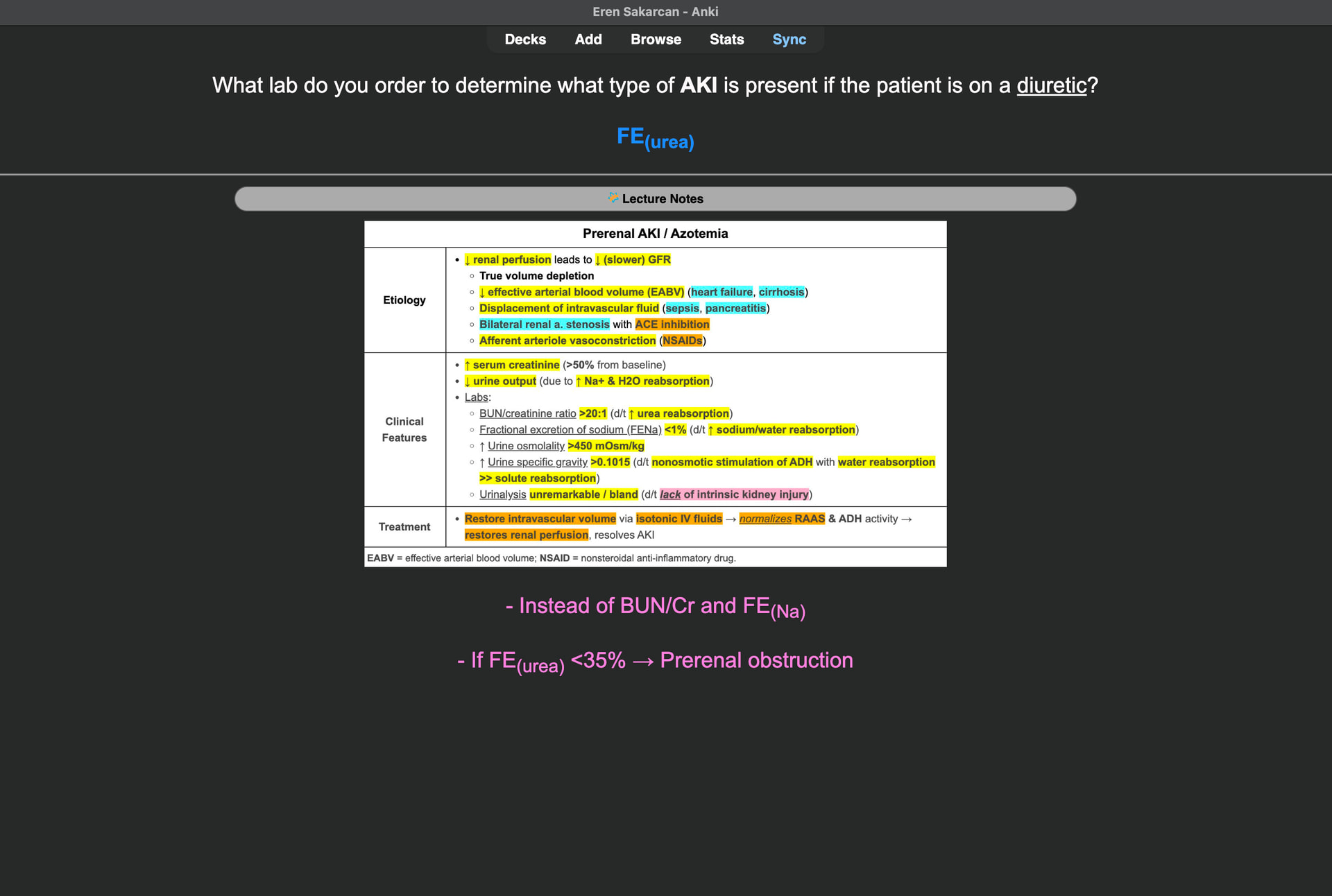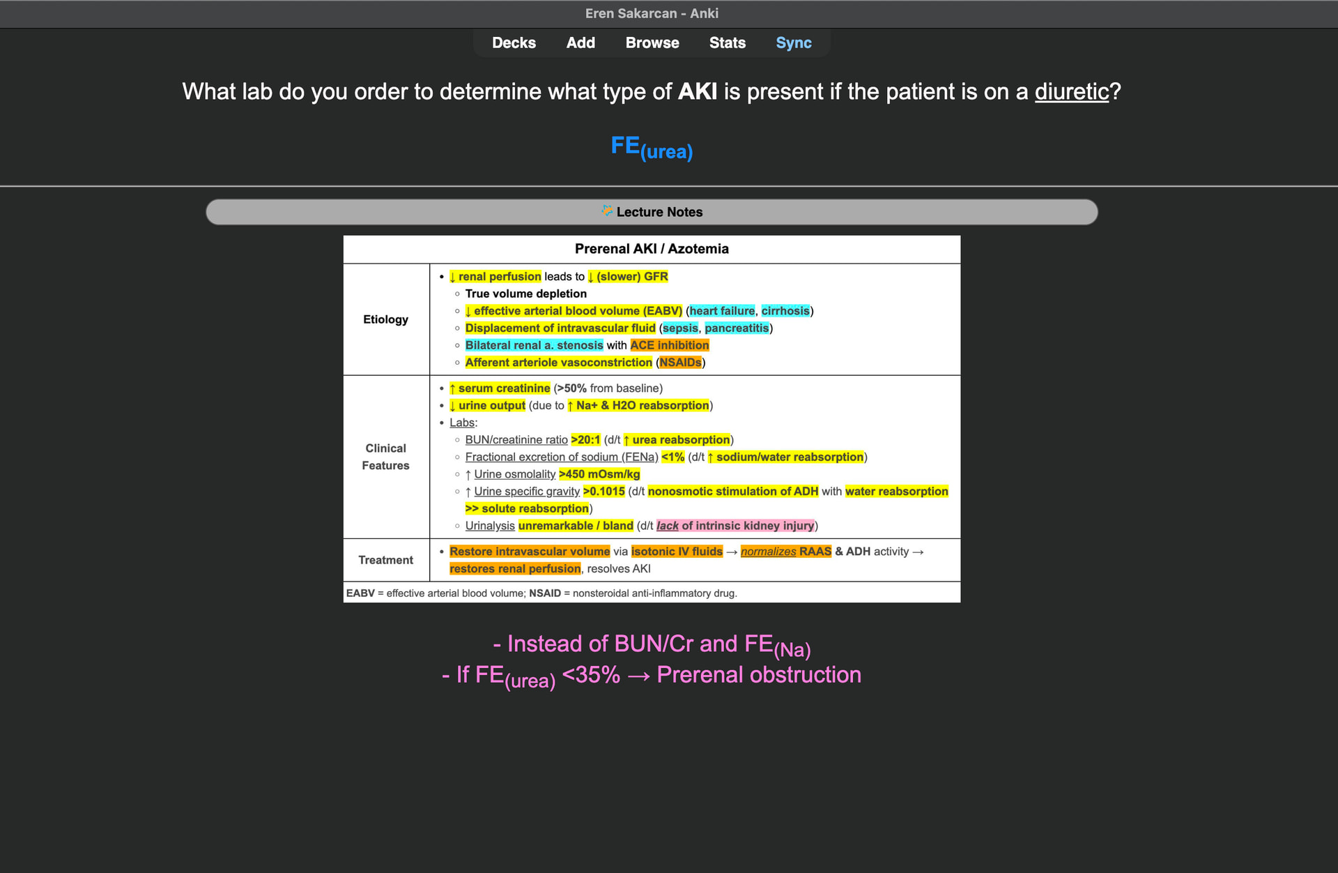 Before (previously corrected, partially reverted my protected changes, noticed today upon review): <div>- Instead of BUN/Cr and FE<sub>(Na)</sub><br></div><br>- If FE<sub>(urea)</sub> <35% → Prerenal obstruction