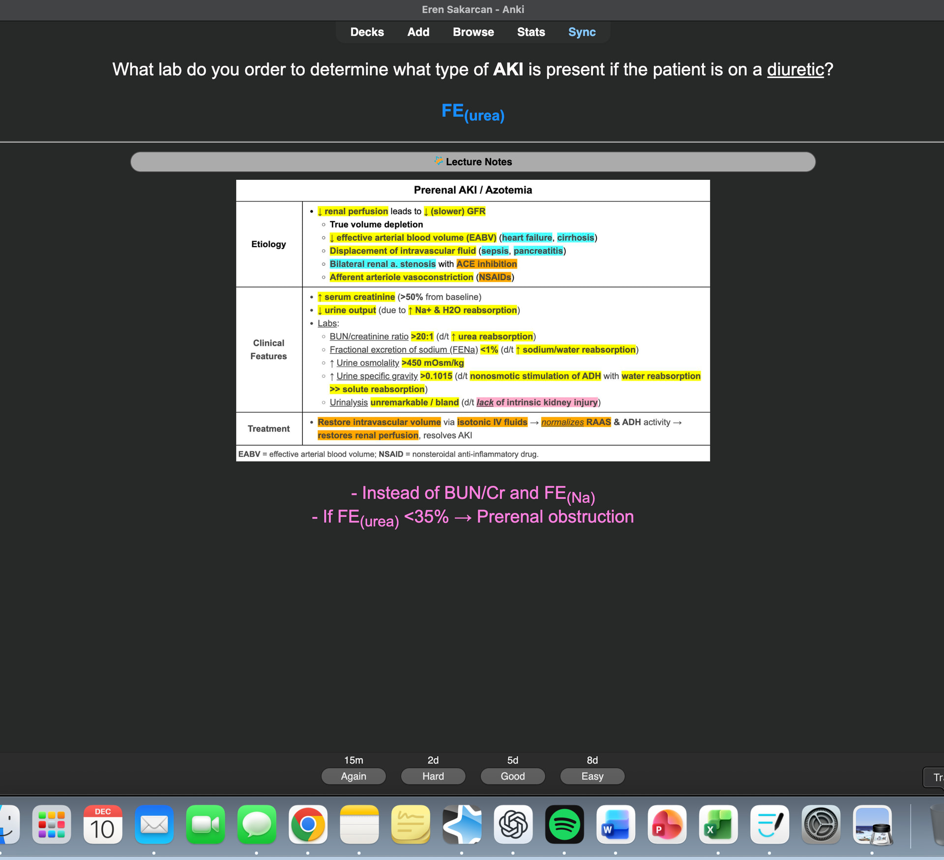 After i correct: <div>- Instead of BUN/Cr and FE<sub>(Na)</sub></div>- If FE<sub>(urea)</sub> <35% → Prerenal obstruction