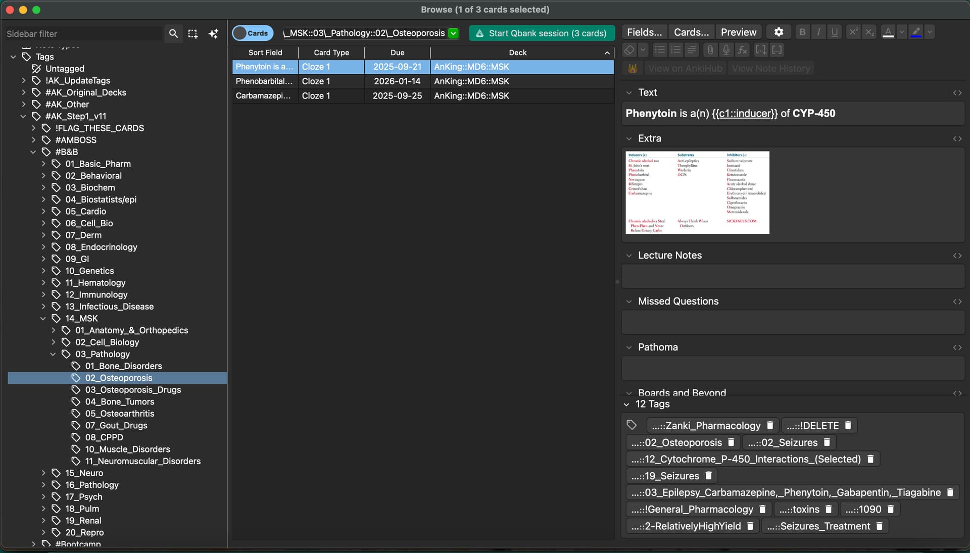 - In Browse view, try searching for “tag:osteoporosis is:suspended” to see if cards are suspended