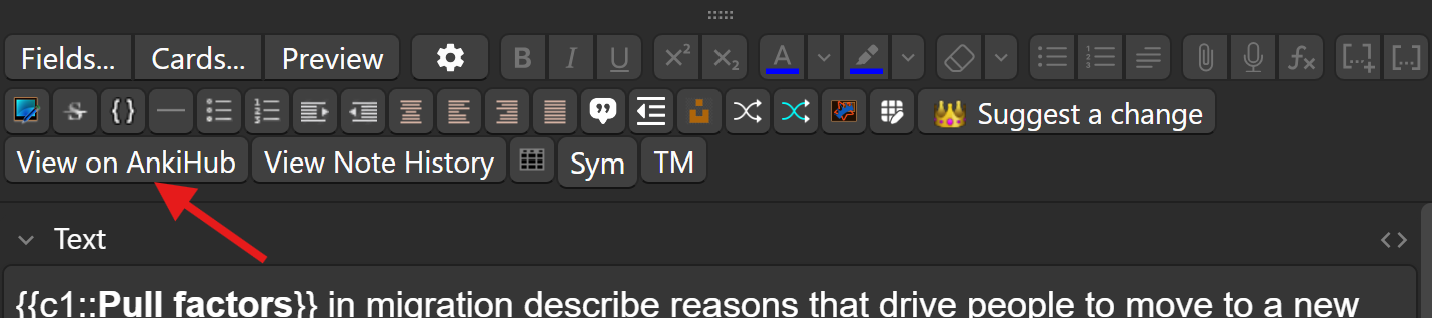 Could you please open the editor for this flashcard (or any other flashcard that has missing images) and tell me if the View on AnkiHub button is clickable?