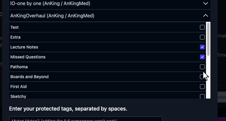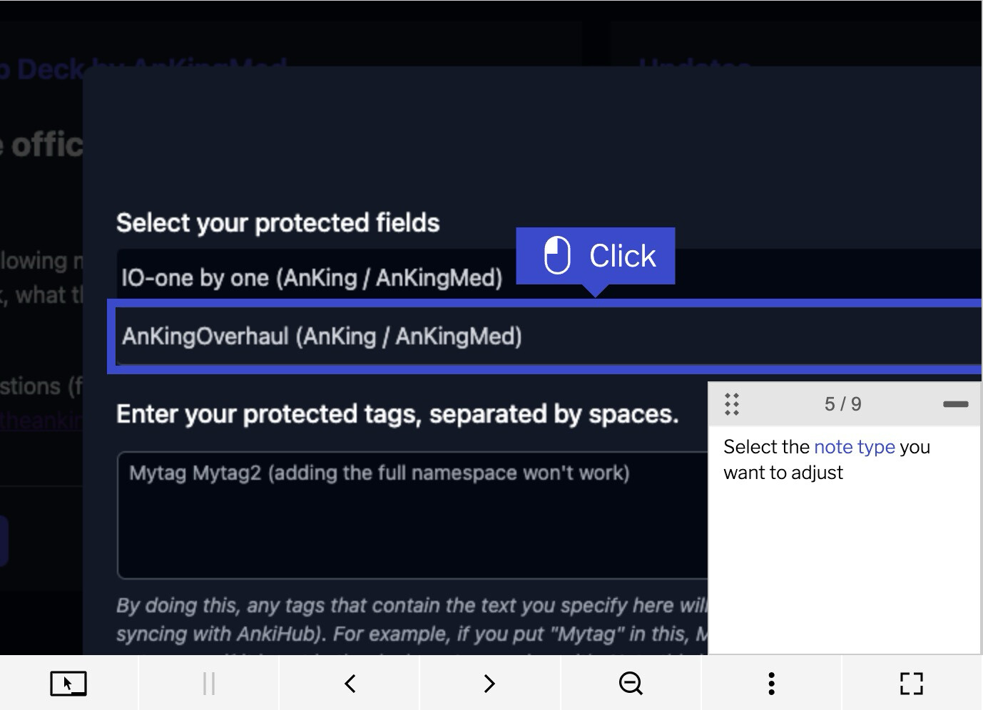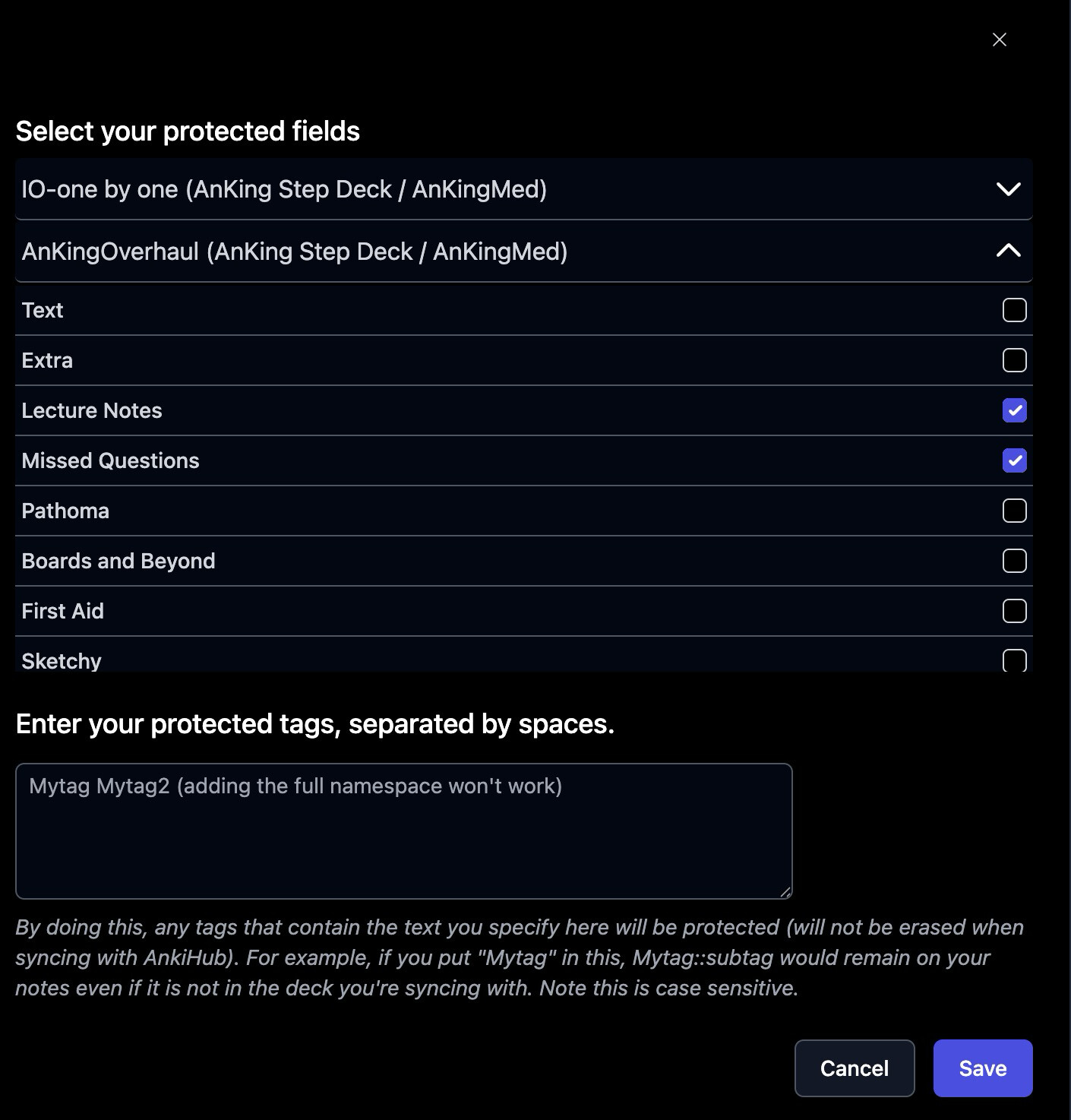 I think the first tutorial, âHow to Manage Protected Fields,â is outdated because what I see at step 5 on my AnkiHub account differs (screenshot below). Could you please tell which ones I should choose?