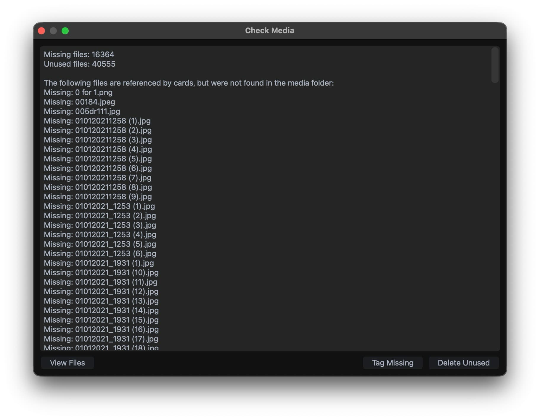 I see youâre experiencing an issue with missing media files in your Anki app. Based on your screenshots, there are thousands of missing files that need to be addressed. Let me help you resolve this!