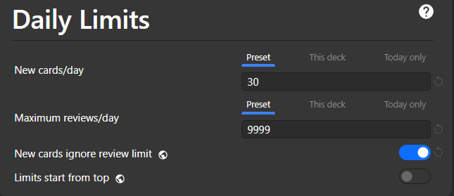 Hi! Looking for help. I change the limit of new cards for each of the different subdecks I have and I usually have no problem shifting them in and out except for my main Anking deck which only shows me 15 new cards at a time. Any idea what I’m doing wrong? Below is a screenshot of everything you might need: