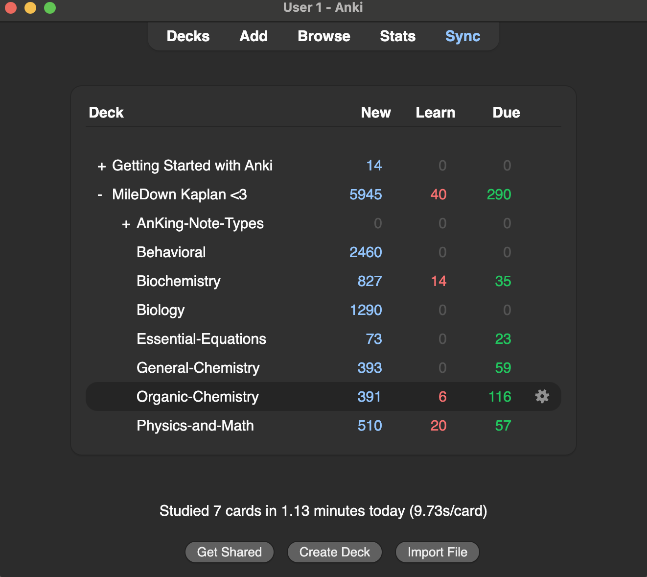 The MCAT deck should install with approximately 6,436 cards and will include all the proper organization with tags like #AK_MCAT_v2 that you can use to organize your studying.