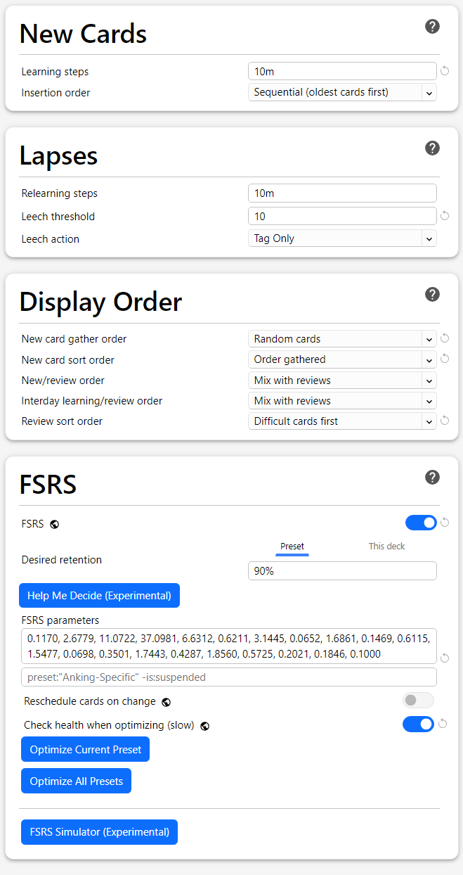 When seeing new cards in the AnKing deck, the initial card interval is several days long. I suspect that has something to do with inadvertently importing some settings when downloading the deck, but I’m not sure how to fix. Below is a screenshot of my deck settings and example of one of my new cards.