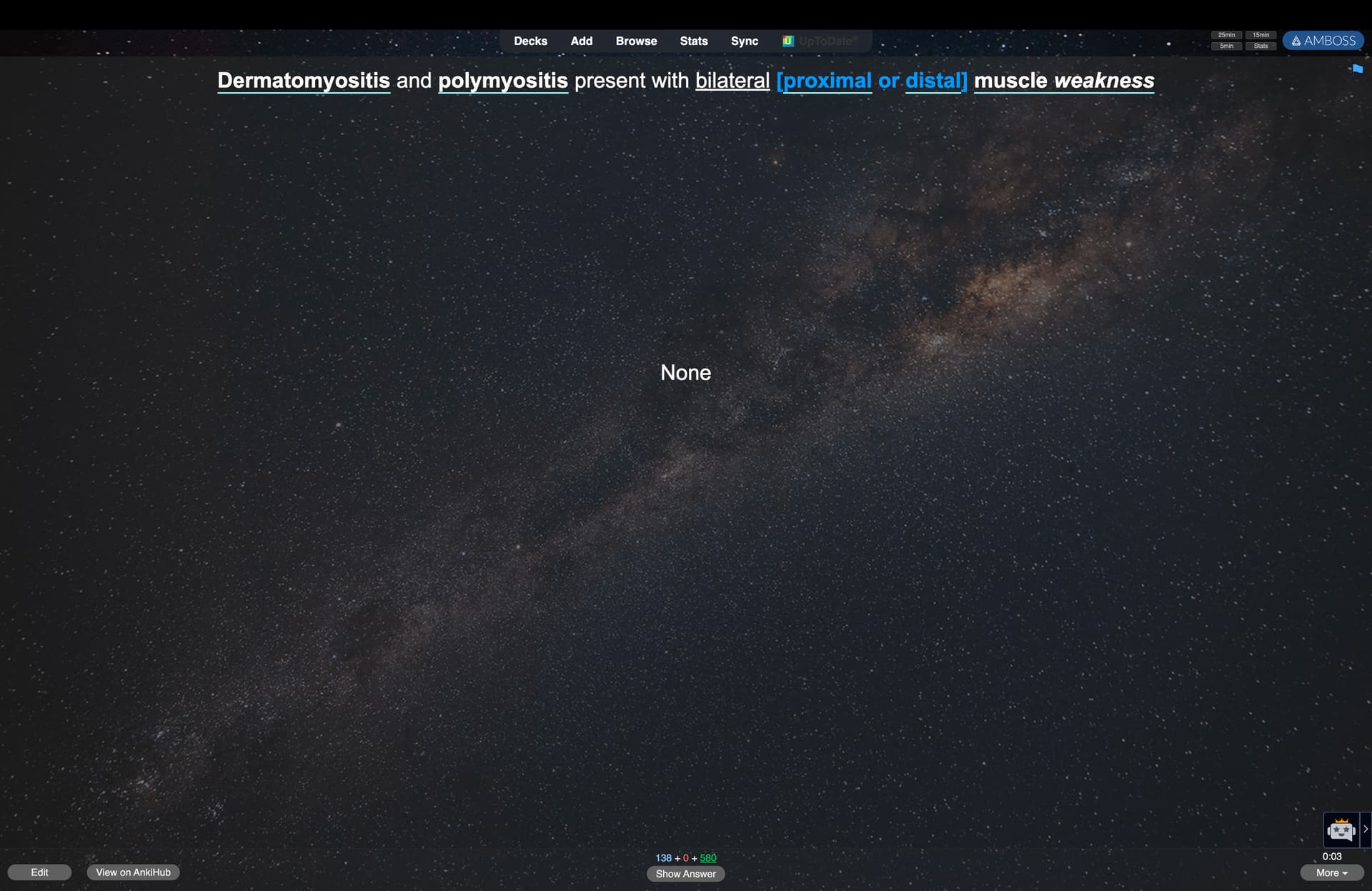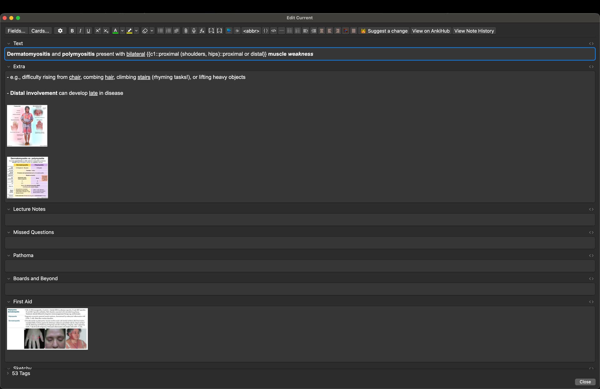 “None” shows on both the front and back of cards in my anki deck. I’m using the Anking deck. Idk how it got there, just showed up today, but I did not make any changes over night. I plugged “front template”, “back template”, “styling” code into chatgpt and asked it to try to figure it out and it doesn’t know. Its only conclusion is that “None” is literally typed into one of the text fields, which is not the case.