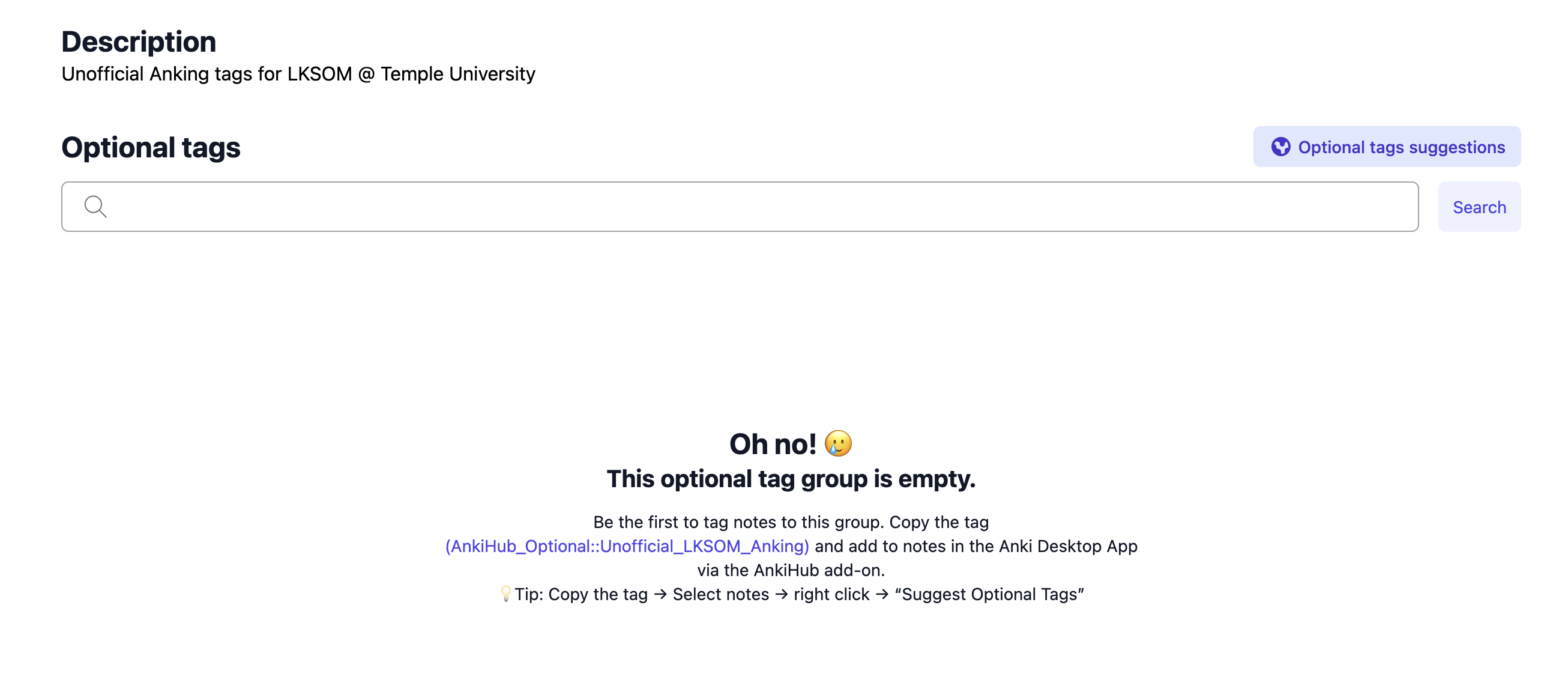 Found 0 results for âtags:official optional tags not working AnkiHub_Optional group empty category: