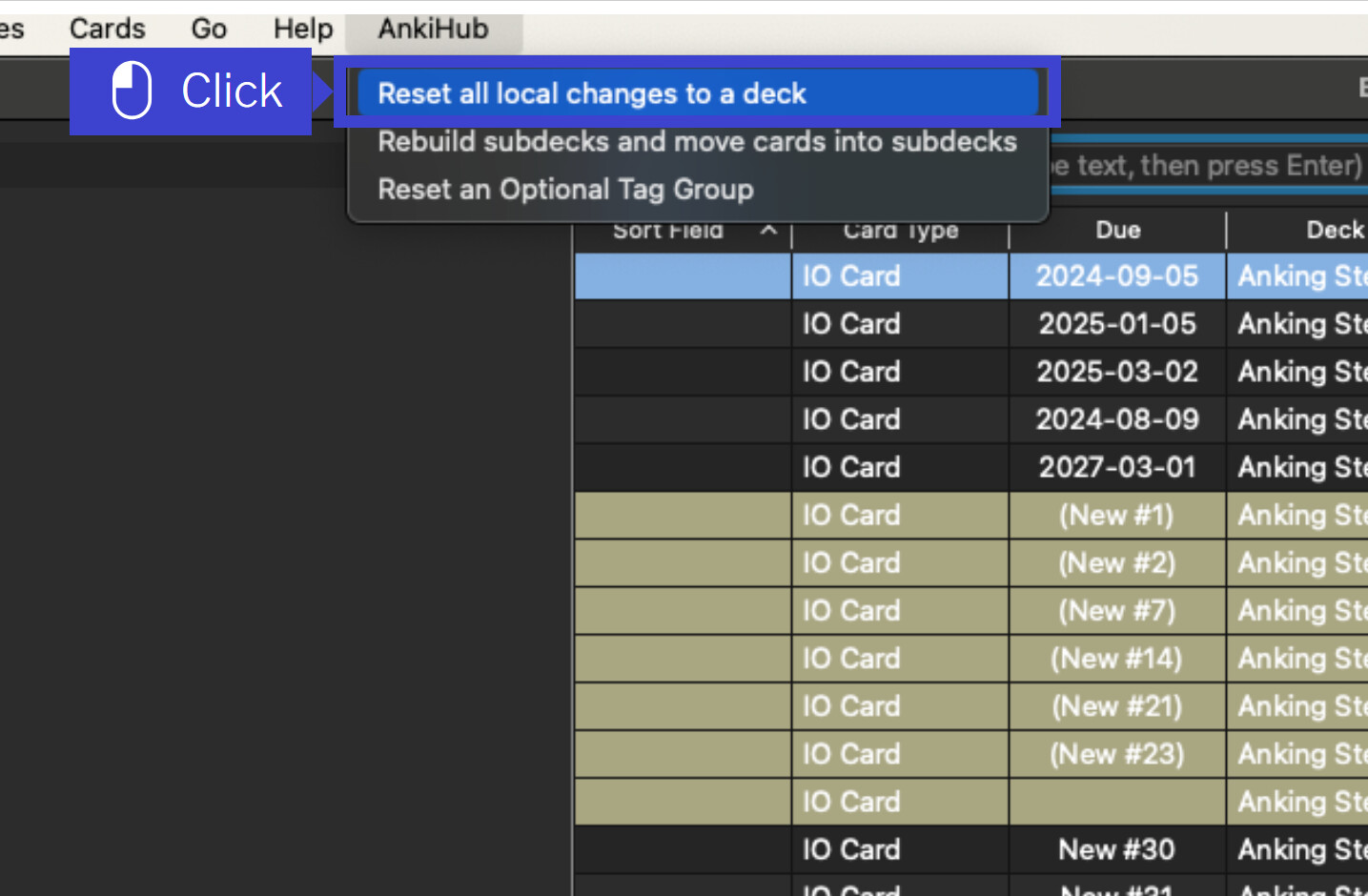 Could you clarify what you are unable to find? Is it the AnkiHub button, or does the deck not appear when you click to reset local changes?