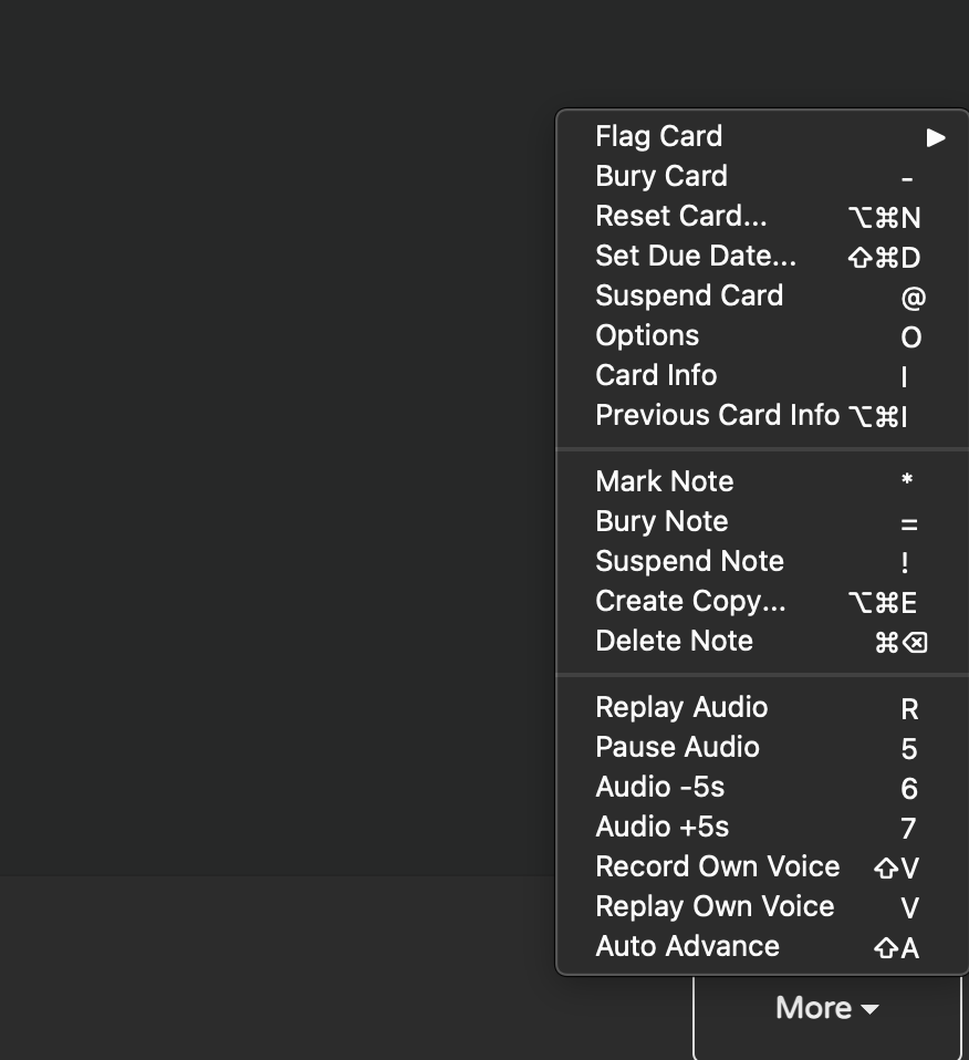 The Anki manual is generally a surefire bet for things like this, though, as you can look based on your operating system and/or which screen you’re most commonly operating from: Studying - Anki Manual