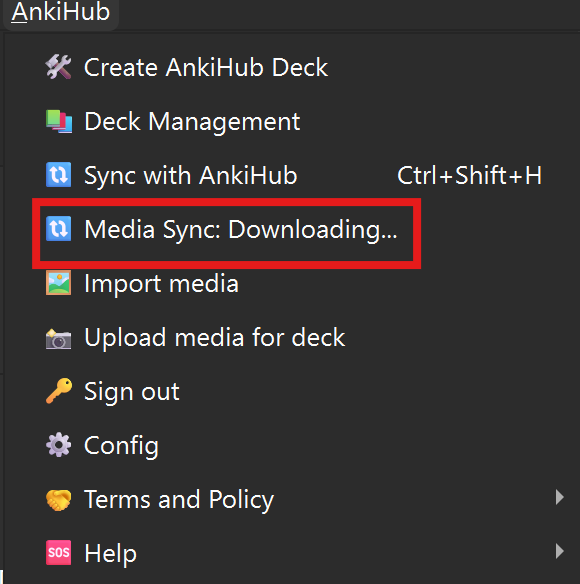 Open the AnkiHub add-on menu in Anki. Check what the media sync status says: