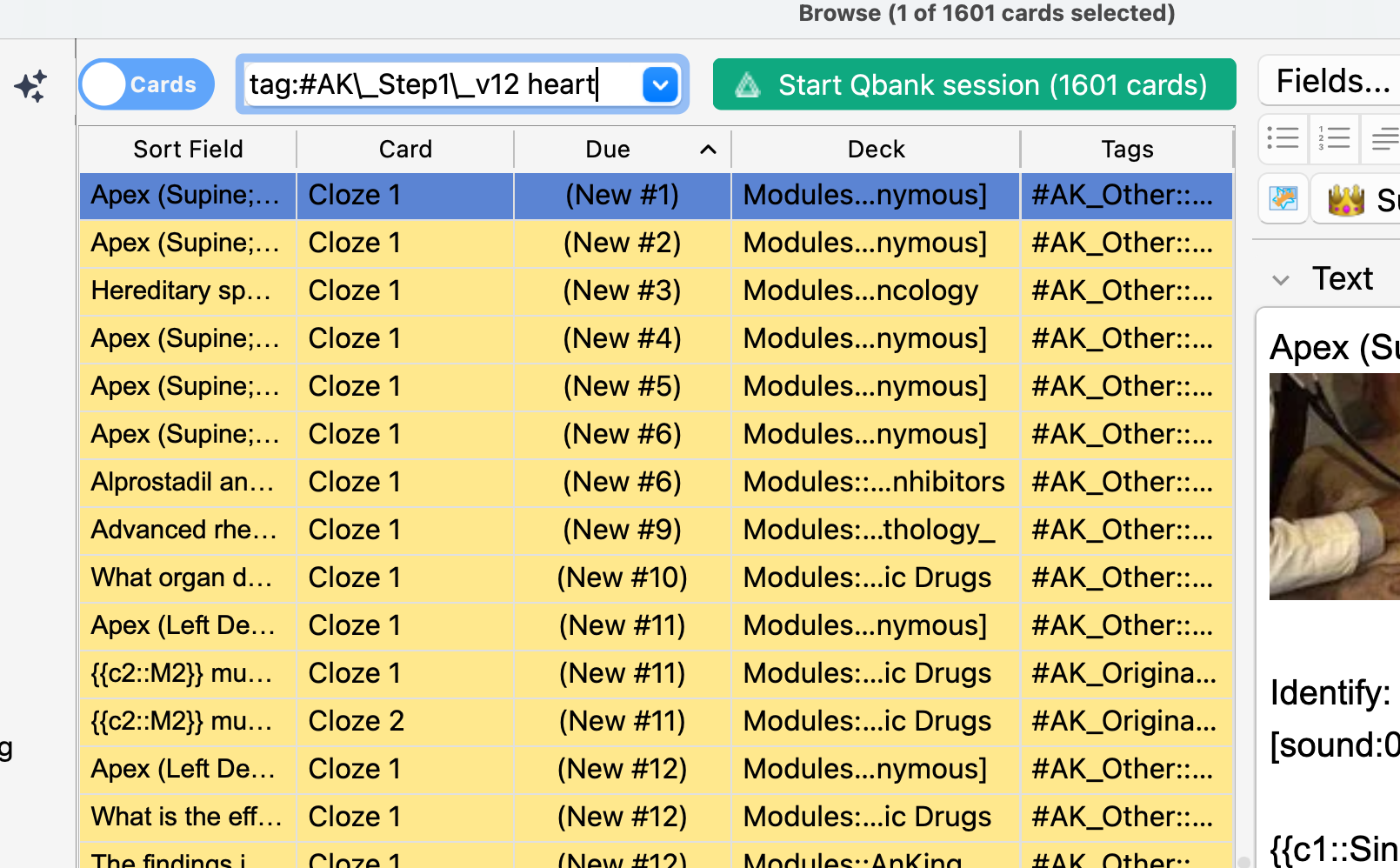 - In Anki desktop, search in the Browser for