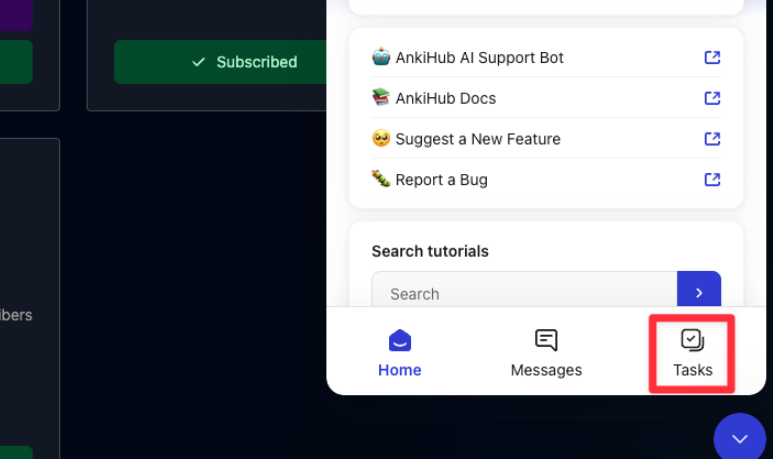 - Click the AnkiHub logo in the topâleft â in the left sidebar, click âTasksâ (as in Brianâs screenshot).