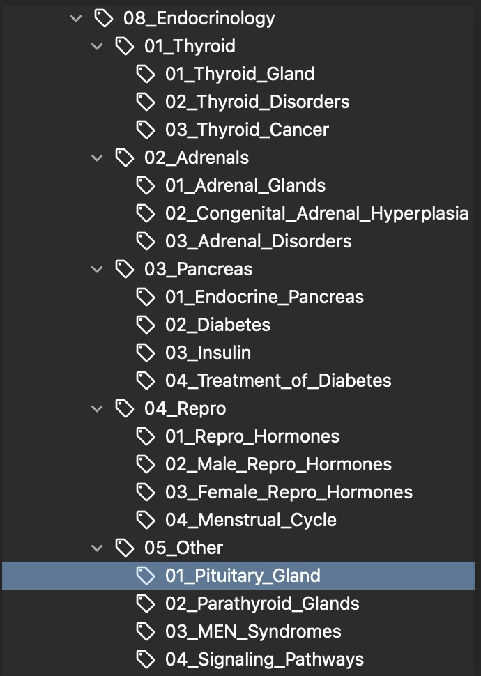 For now, if this is bothering you, you can select all the cards from 02_Pituitary_Pathology, move them to 01_Pituitary_Anatomy_and_Physiology, and then just rename the tag to 01_Pituitary_Gland.