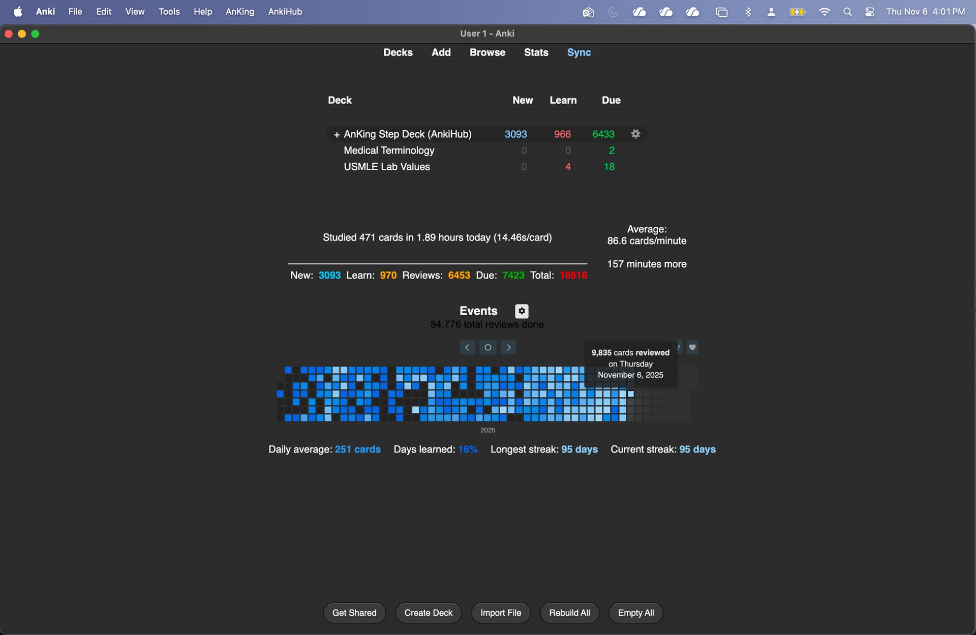 If the problem persists after these steps, it might be worth asking in the Anki Support Forum as this appears to be an Anki-specific statistics issue rather than related to AnkiHub functionality.