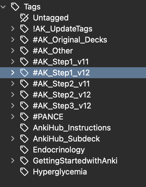 The deck names in your sidebar (AnKing â Step 1/Step 2, etc.) usually stay the same; the content (notes, fields, tags, card templates) is what gets updated to v12.