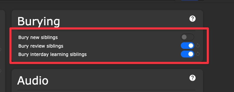 Burying siblings is actually designed to improve learning by preventing you from seeing very similar cards in immediate succession, but for certain study strategies (especially with cloze deletions), you might prefer to see all related cards together.
